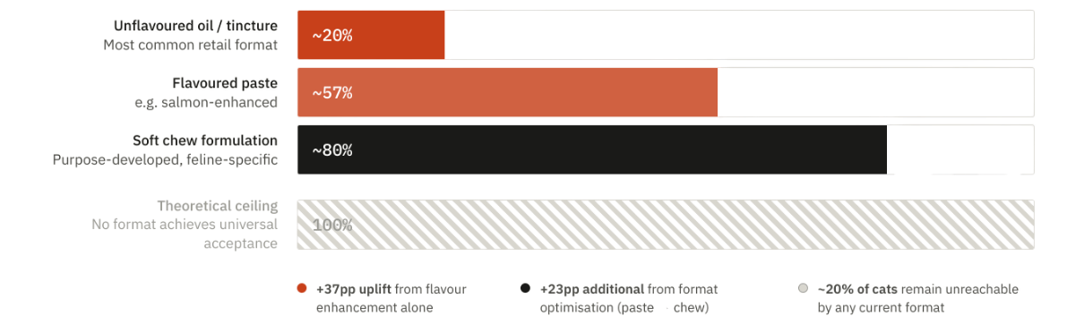 Palatability represents a clinical and commercial bottleneck, that will determine brands’ ability to build an evidence base in cats.
